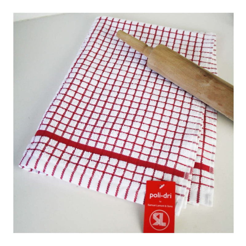Poli-Dri Cotton Tea Towel Kitchen Linens 6-Pack White/Red by Samuel Lamont