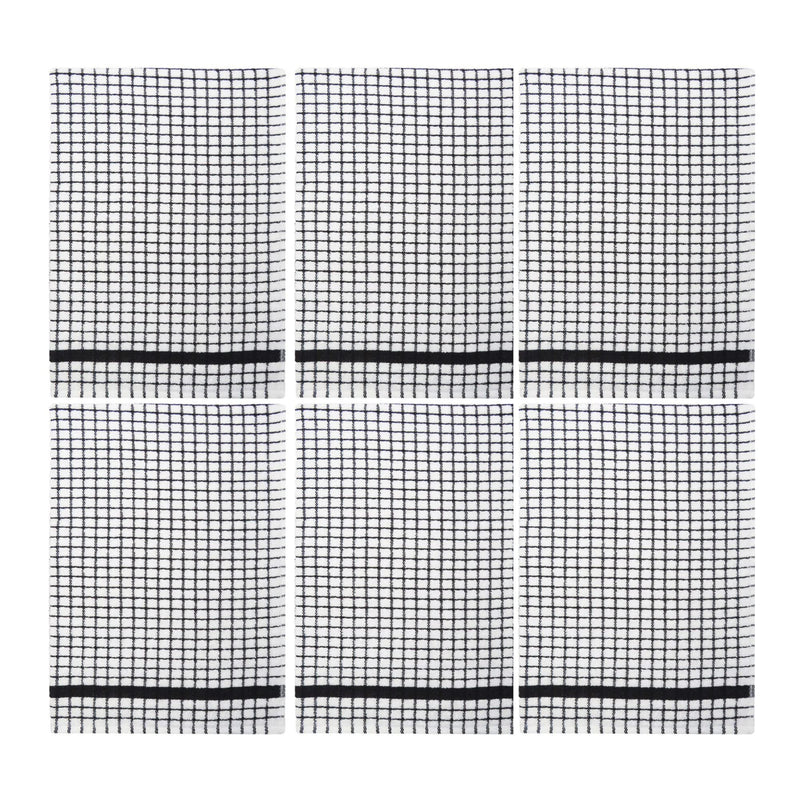 Poli-Dri Cotton Tea Towel Kitchen Linens 6-Pack White/Black by Samuel Lamont