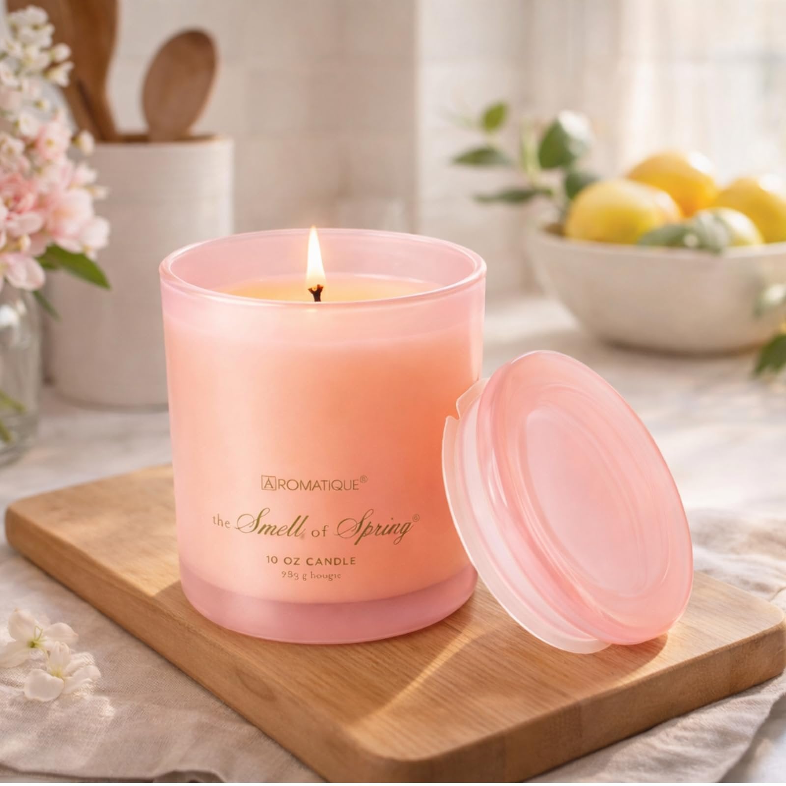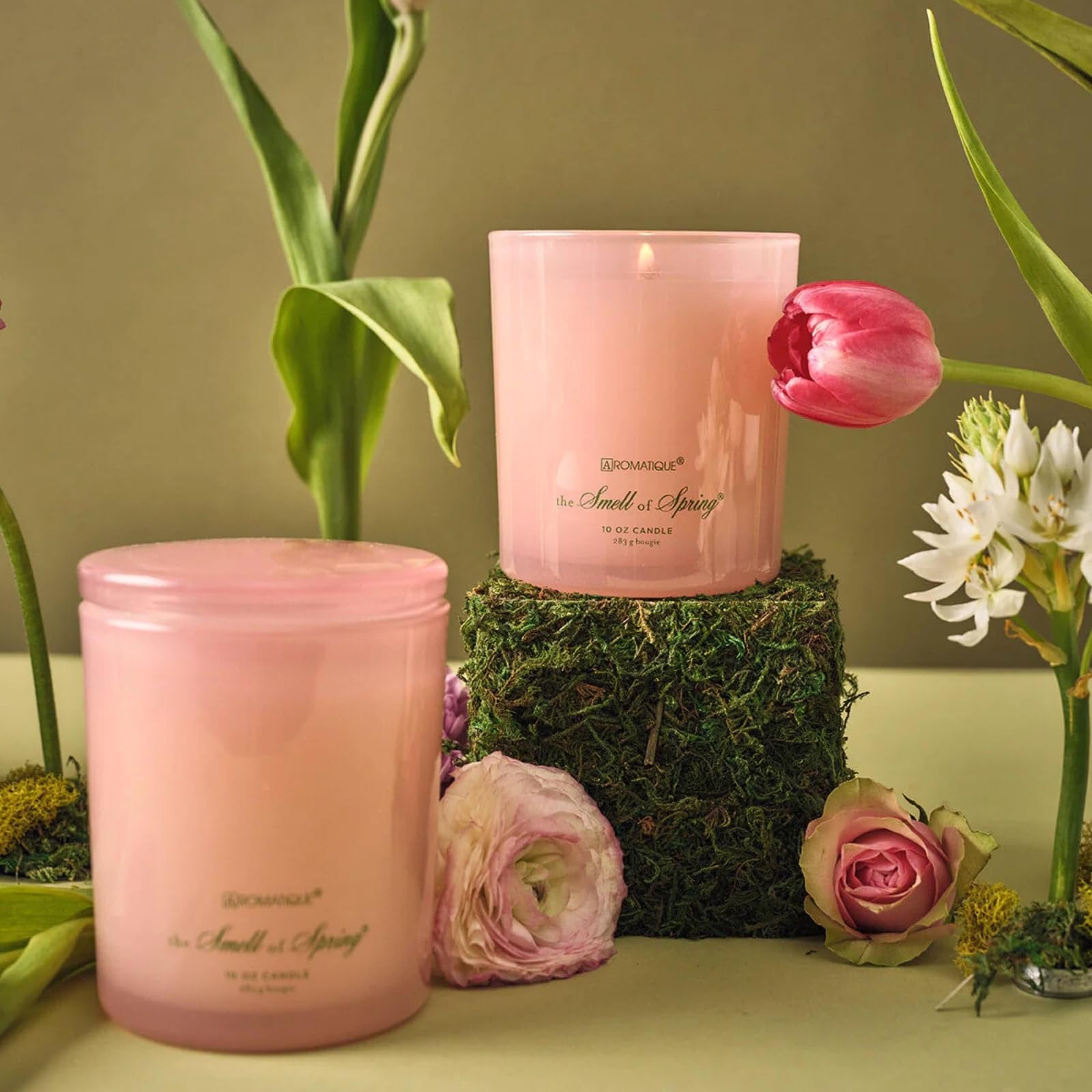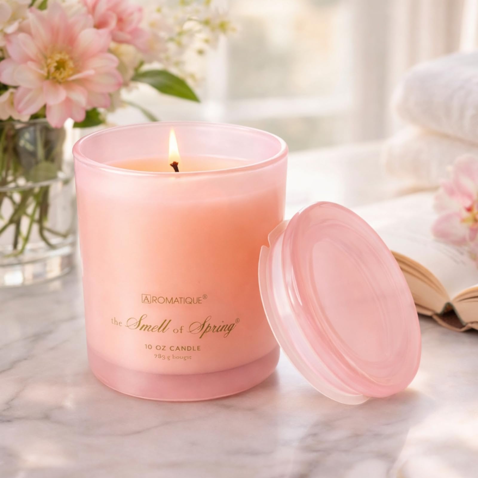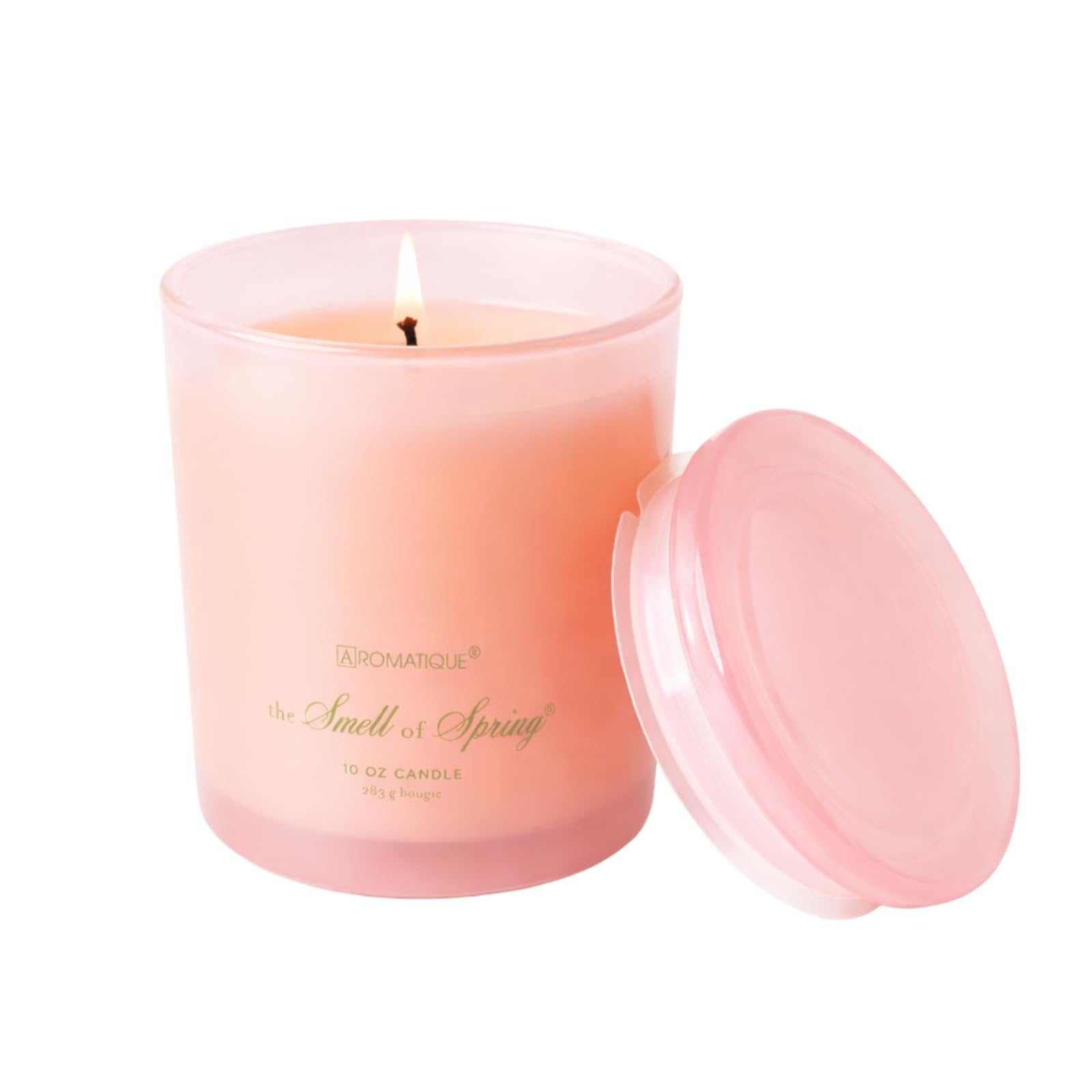 ELEVATED PINK GLASS DESIGN – This luxury candle is housed in a light pink glass vessel featuring clean architectural lines and polished text. Designed to complement sophisticated interiors, the vessel functions as both a scented candle and a decorative accent, making it suitable for display on shelves, coffee tables, consoles, or styled trays throughout the home.ICONIC FLORAL SPRING FRAGRANCE WITH LAYERED NOTES – Aromatique The Smell of Spring Foundry Candle delivers a refined floral fragrance built from hyacinth, jasmine, rose, and lily of the valley, accented with fresh green notes and a subtle citrus nuance. The fragrance unfolds gradually as the candle burns, creating a recognizable seasonal scent that has become a signature choice for elegant home fragrance collections.ELEVATED PINK GLASS DESIGN – This luxury candle is housed in a light pink glass vessel featuring clean architectural lines and polished text. Designed to complement sophisticated interiors, the vessel functions as both a scented candle and a decorative accent, making it suitable for display on shelves, coffee tables, consoles, or styled trays throughout the home.HAND POURED CRAFTSMANSHIP WITH PREMIUM PRESENTATION – Each 10 oz Foundry Candle is individually hand poured in Arkansas using white wax for a refined, uniform appearance. Attention to detail is evident in the smooth wax finish, coordinating lid, and carefully printed gold accents, resulting in a well-crafted candle that reflects thoughtful design and elevated presentation from start to finish.DESIGNED FOR HOME FRAGRANCE STYLING AND ENTERTAINING – This floral scented candle is well suited for living spaces, dining areas, entryways, and guest rooms. Its timeless fragrance profile and elegant vessel make it a versatile addition to seasonal styling, everyday home decor, and special gatherings, offering an elevated sensory element without overpowering surrounding spaces.POLISHED GIFT OPTION FOR SPRING AND YEAR-ROUND OCCASIONS – With its signature Aromatique fragrance, decorative pink glass vessel, and generous 10 oz size, this candle makes a refined gift for Mother’s Day, Easter, housewarmings, birthdays, or hostess occasions. Its elegant presentation and classic scent profile create a memorable gifting experience suited for a wide range of personal and professional celebrations.