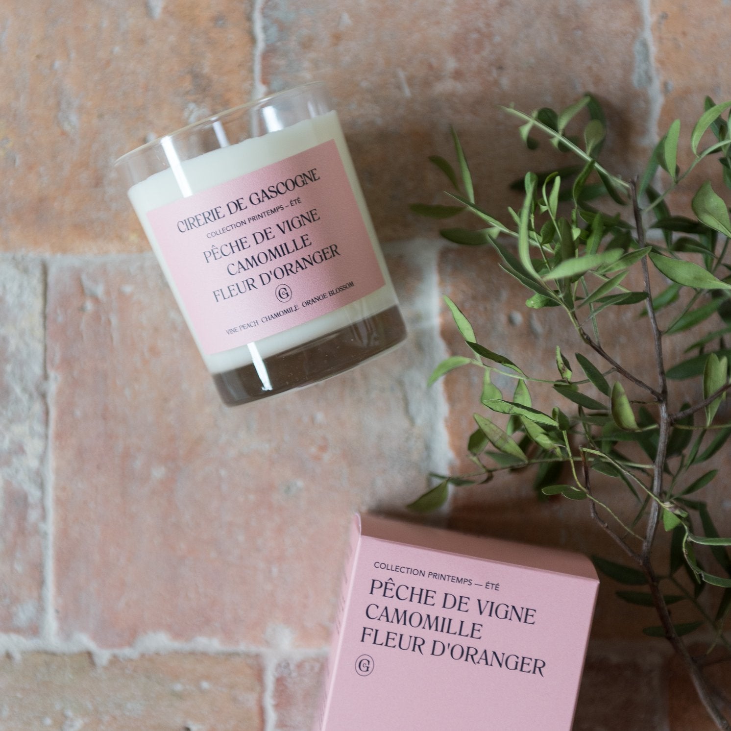 Scented Soy Candle | Vine-Peach, Chamomille, Orange-Blossom Blend Fragrance (Peche de Vigne, Camomille, Fleur D'Oranger)