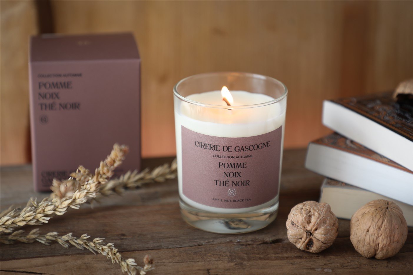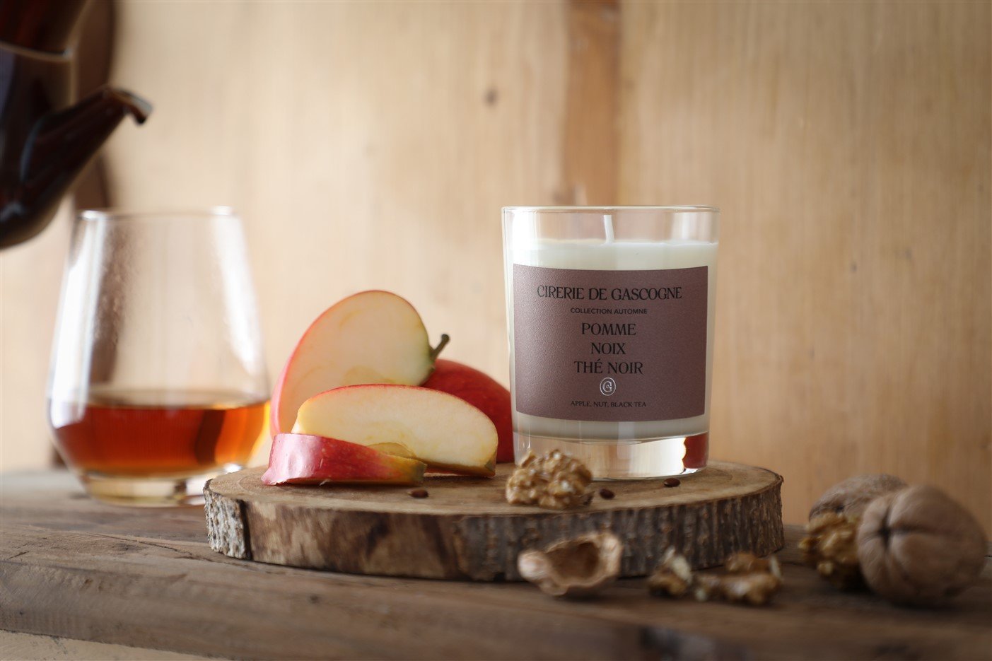 This mixture transcribes the scent of the candied apple that fell at the foot of the apple tree at the end of October. Combined with walnuts and black tea, this blend brings all the notes of autumn, candied fruit, the sweetness of tea and the authenticity of walnuts. Warm and comforting, this candle helps you turn the page on summer. Hand made candle by a certified and registered artisan.