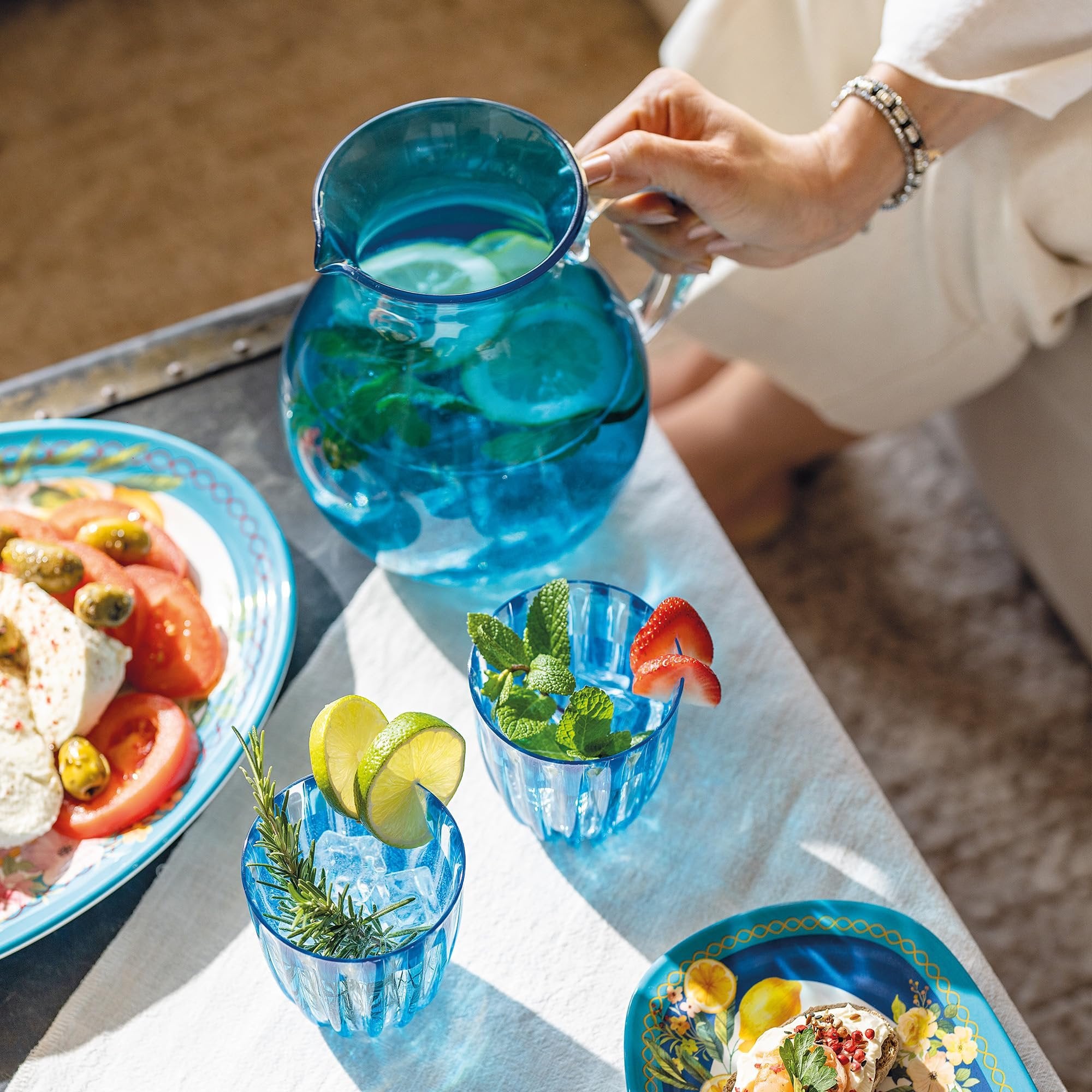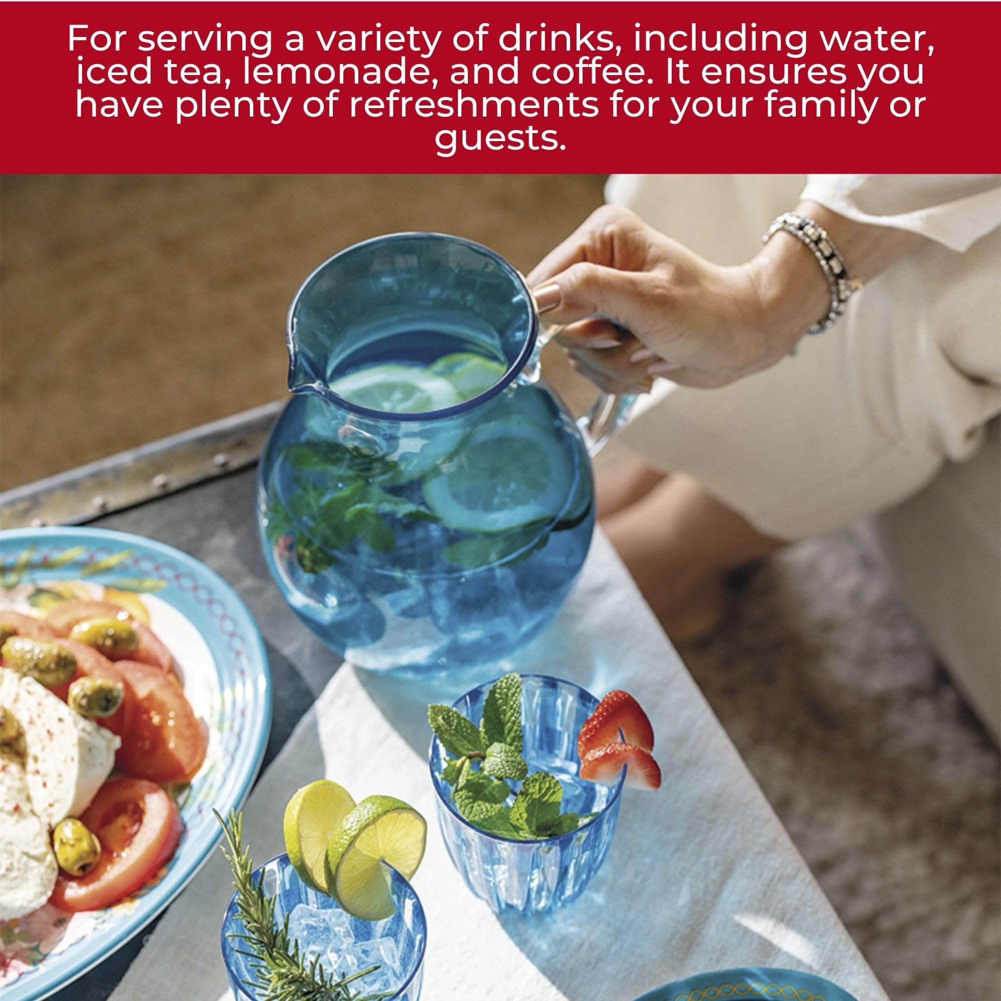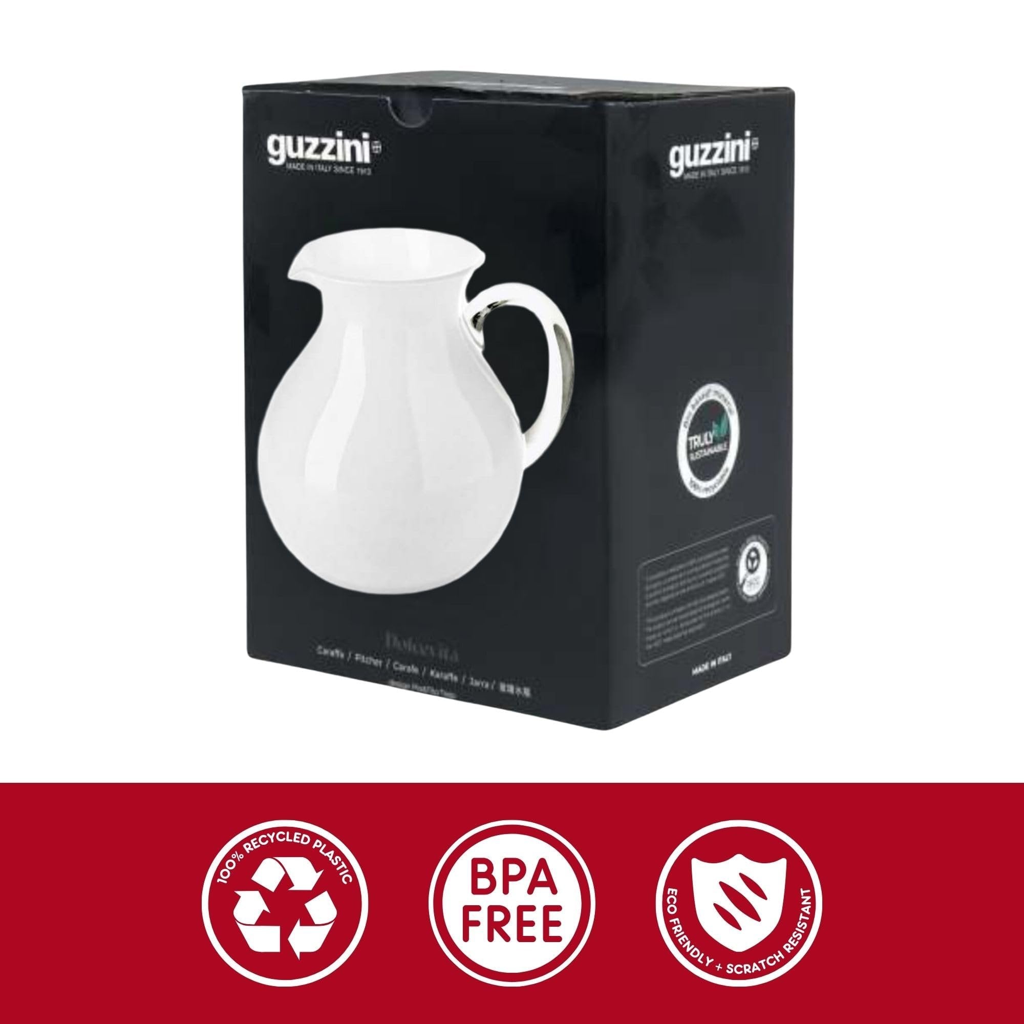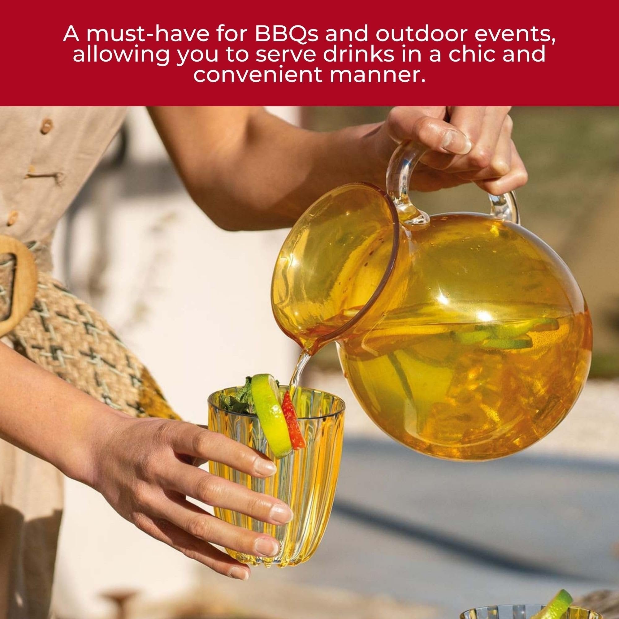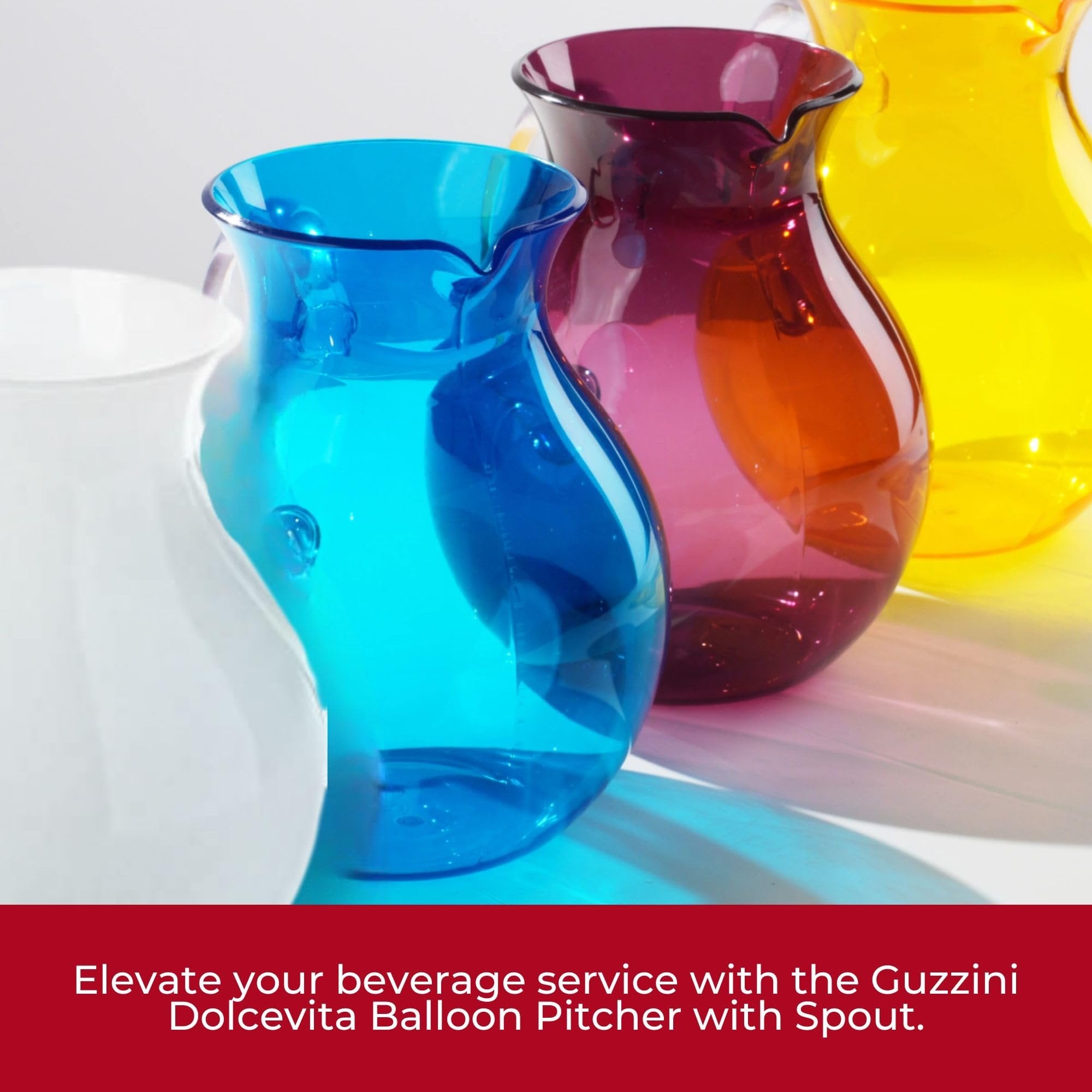 The Guzzini Balloon Pitcher is perfect for serving a variety of drinks, including water, iced tea, lemonade, and coffee. Its generous capacity ensures you have plenty of refreshments for your family or guests, making it an essential item for any occasion. A must-have for BBQs and outdoor events, allowing you to serve drinks in a chic and convenient manner. Stylish and elegant with an attractive round shape and an ergonomic handle for a firm, easy grip. Its distinctive, elegant design is a fine combination of style and function.
