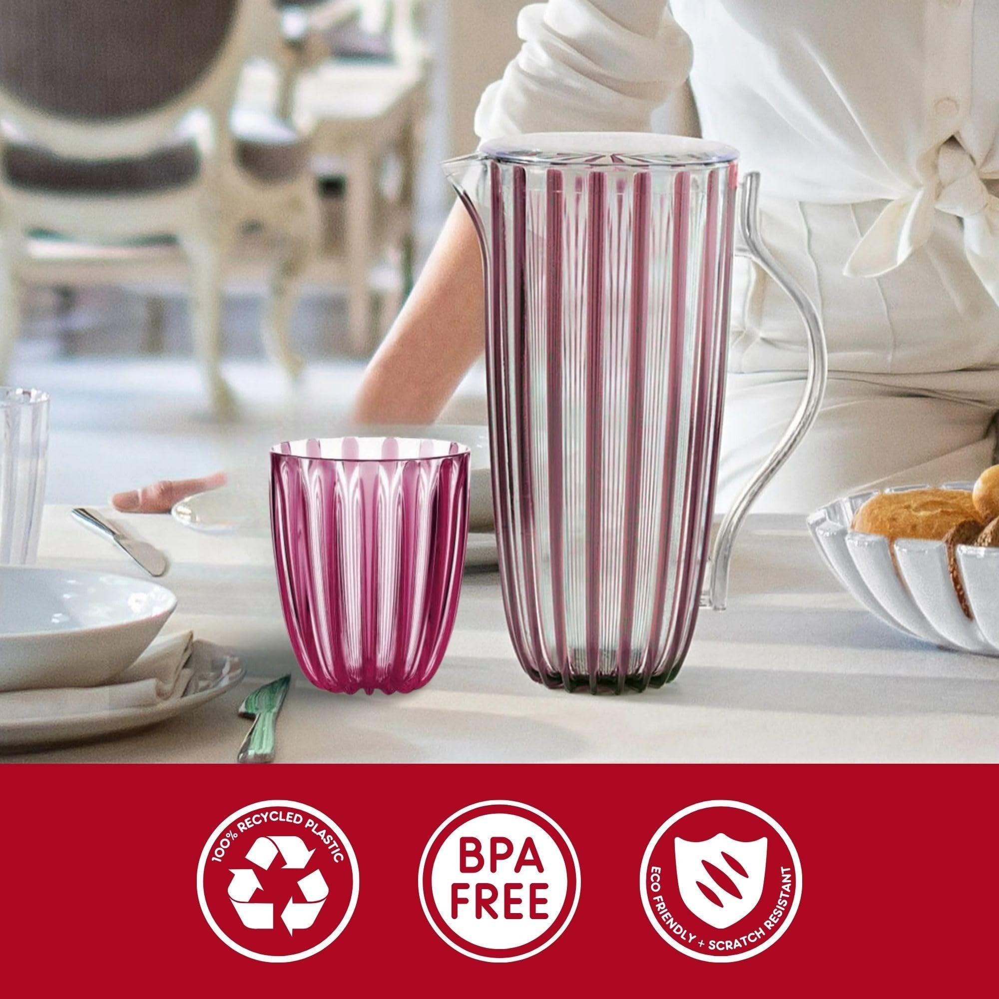 Available in a range of vibrant colors, the Guzzini Dolcevita low tumblers are perfect for everyday drinks and stylish entertaining. Crafted from innovative organic plastic made from plant waste and biomass residues, they are renewable, non-fossil, and 100% recyclable.
