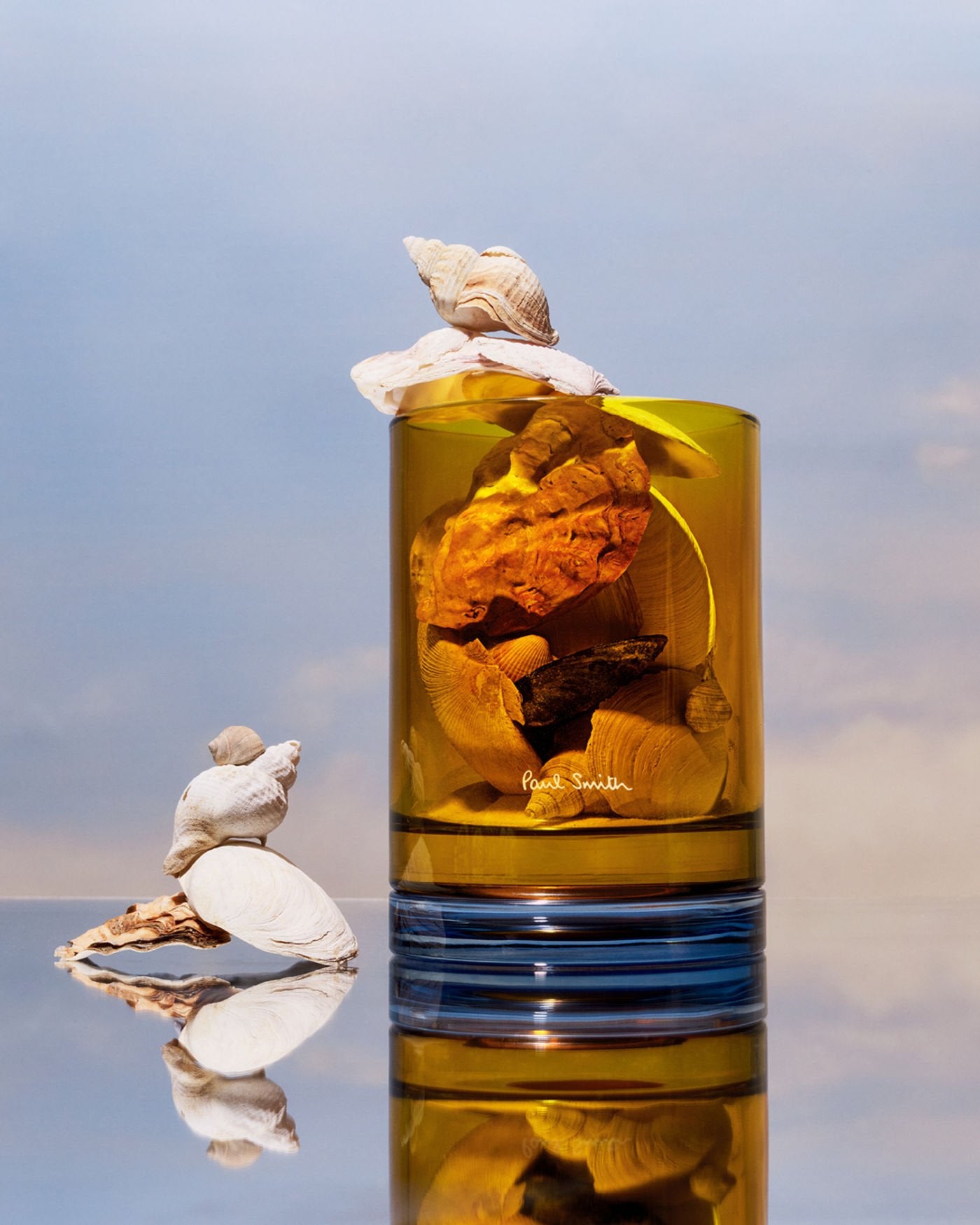 Designed to be reused, each two-tone vessel is filled with a scent that recalls some of Paul’s most cherished memories.