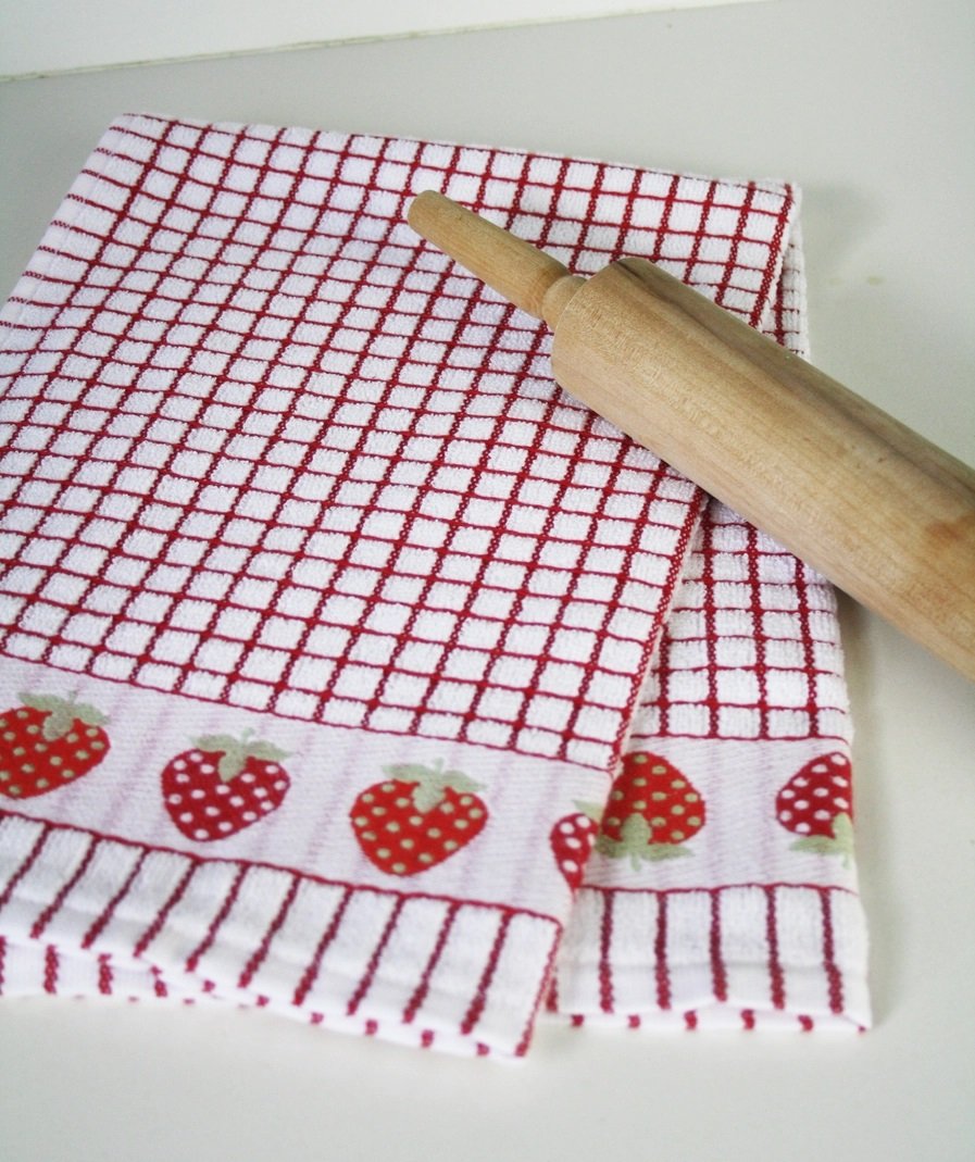 Poli-Dri Jacquard Cotton Kitchen Tea Towel | Set of 2 | Strawberry Red