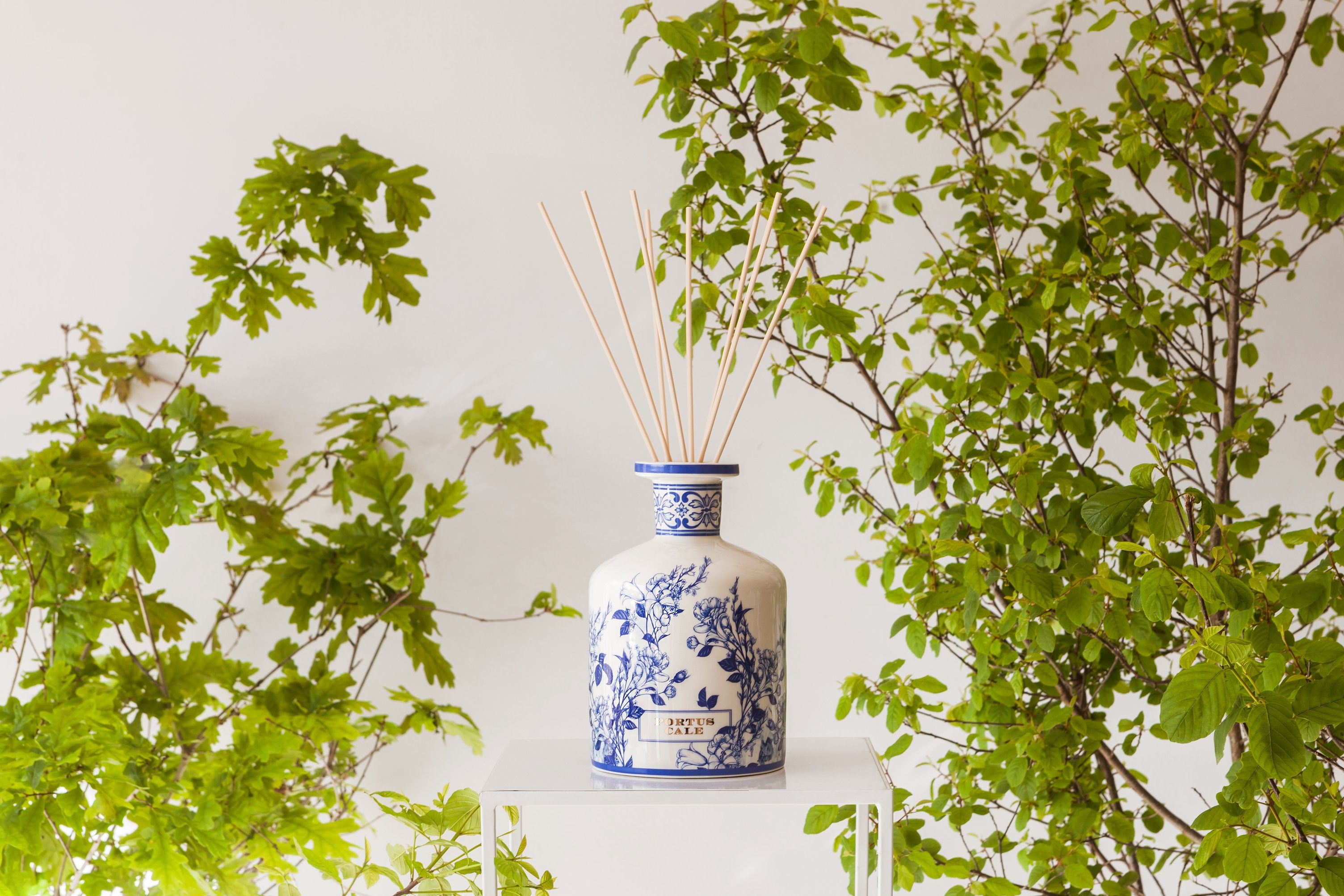Each piece is individually created by Portuguese master ceramists using time-honored methods—from molding to hand-applied gold finishing. The blue floral illustrations over white ceramic honor the traditional color palette of Portuguese tiles, making this diffuser an heirloom-worthy object.