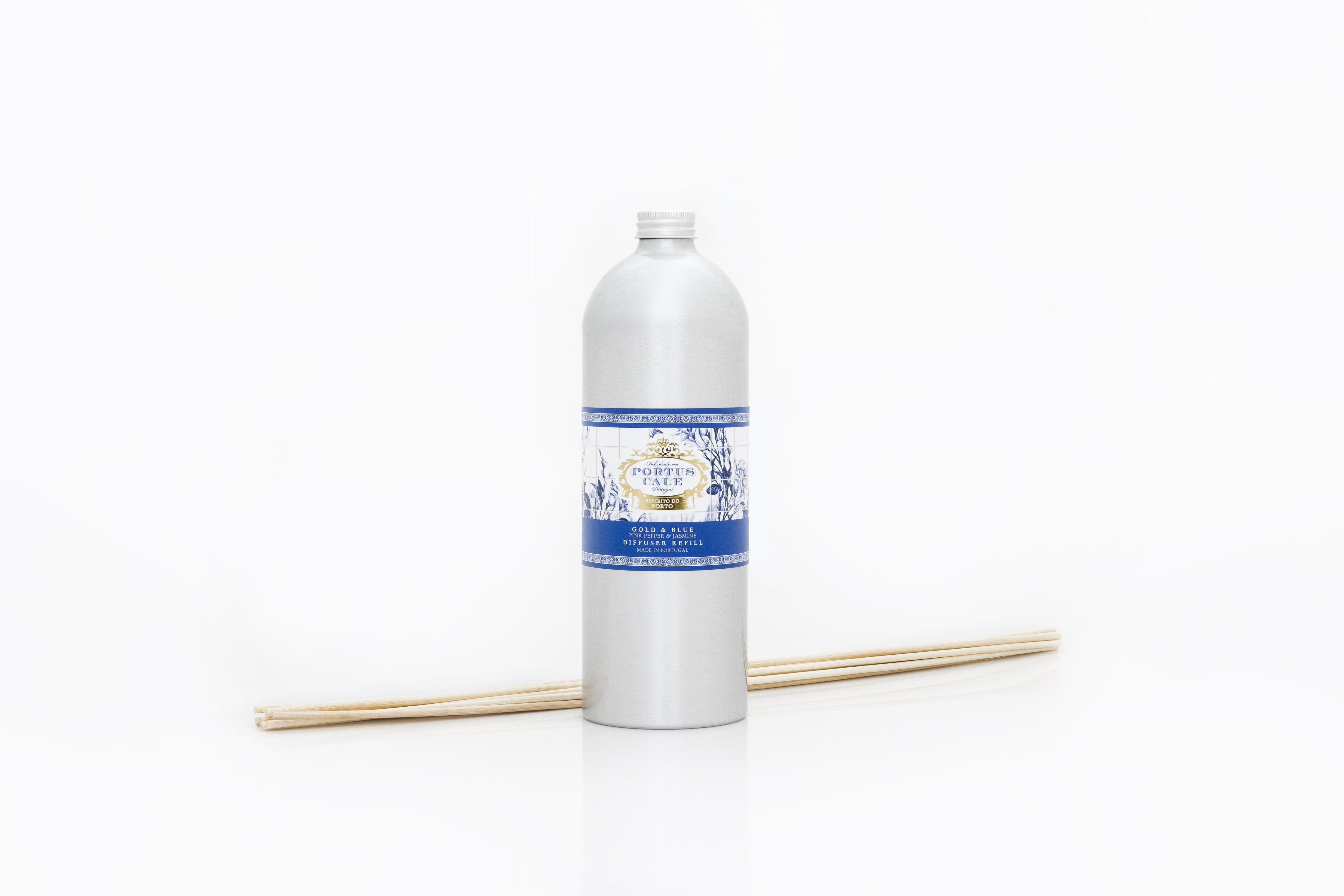 Portus Cale Luxury Gold & Blue Ceramic Diffuser Set | Vase & Refill Oil | Pink Pepper & Jasmine