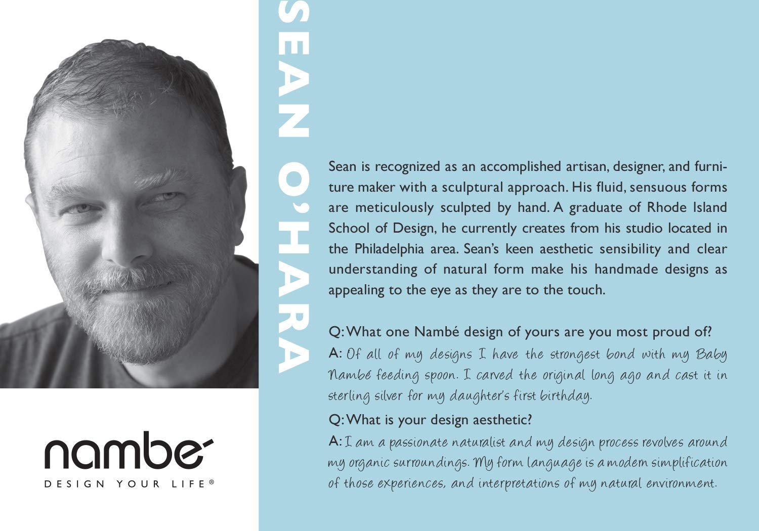 Designed by Sean Ohara: Sean is an award winning designer, sculptor and furniture maker. His sensuous forms are meticulously shaped by hand, illustrating his sculptural approach to developing his designs and underlining his mastery of numerous materials. His keen aesthetic, sensibility, and understanding of form make his handmade designs as appealing to the eye as they are to the touch.