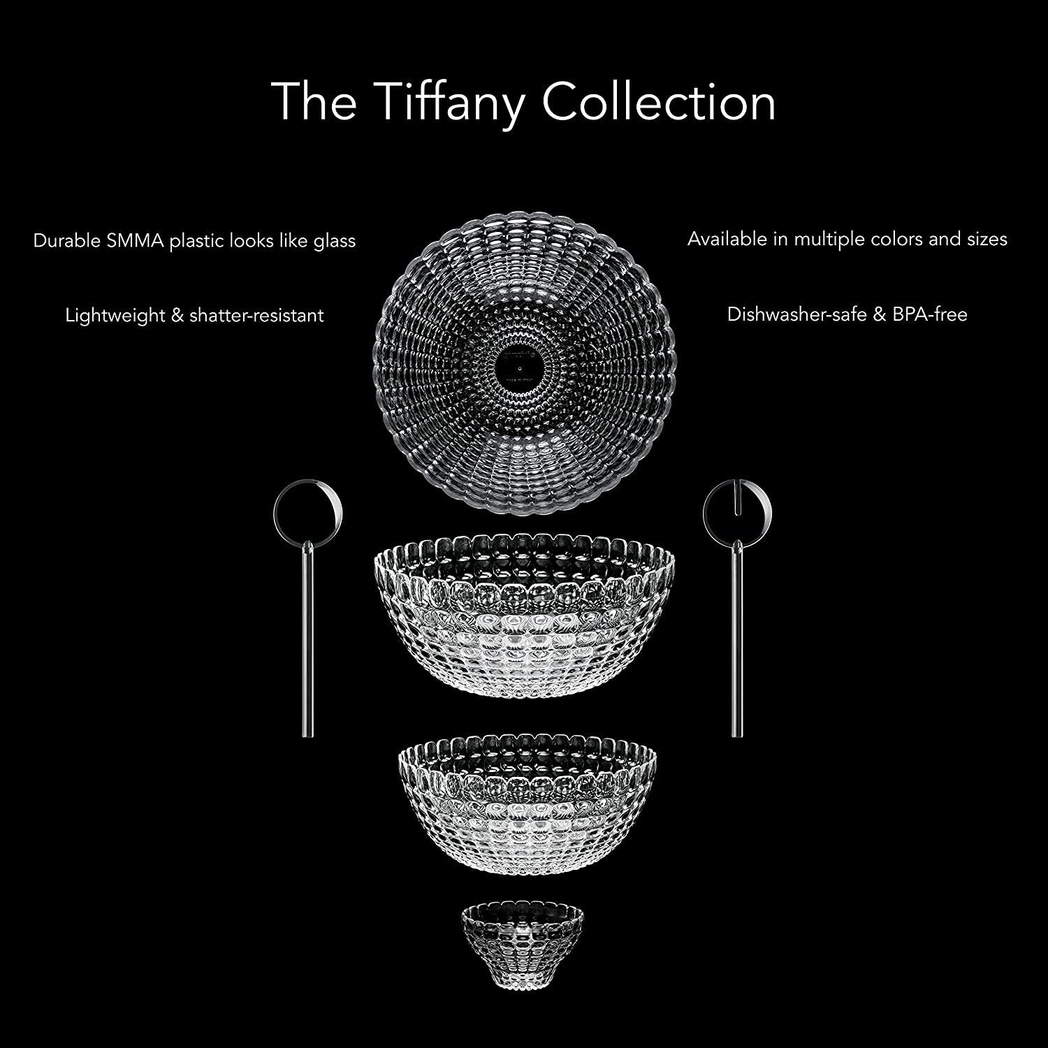 Tiffany is a collection inspired by timeless style and elegant ideas. Made of quality transparent plastic with sparkling color effects so it is perfect for an outdoor meal but also adds a sophisticated touch to the most formal table settings. Rigorously Made in Italy.