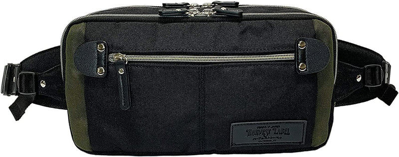 Harvest Label, 2-Way Cross Pack Black Sling Pack and Shoulder Bag Multi-use, Slig Pack Straps Zippered Black-Olive Green,