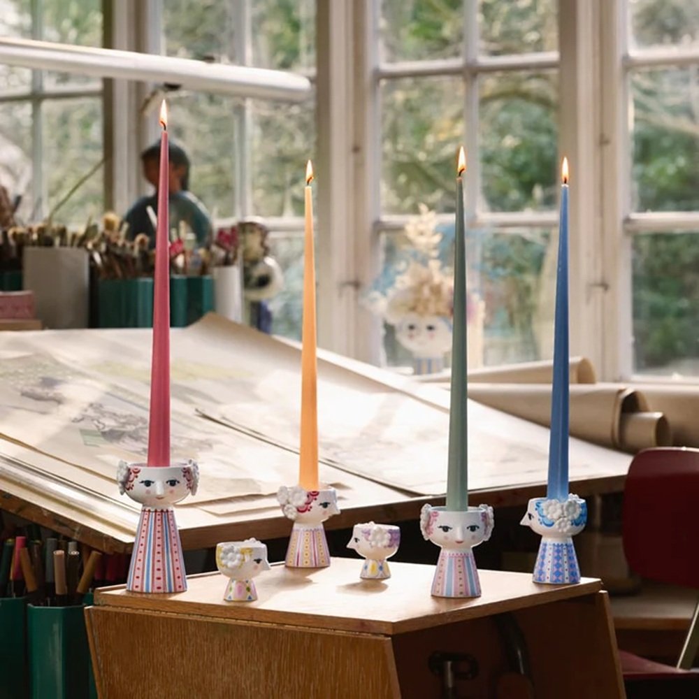 Brighten your home with the whimsical charm of the Bjørn Wiinblad Eva Candle Holder in Pink & Blue. With her joyful smile, rosy cheeks, and vibrant colors, Eva perfectly embodies the imaginative spirit of Bjørn Wiinblad—an artist celebrated for his playful, expressive, and richly decorative style.