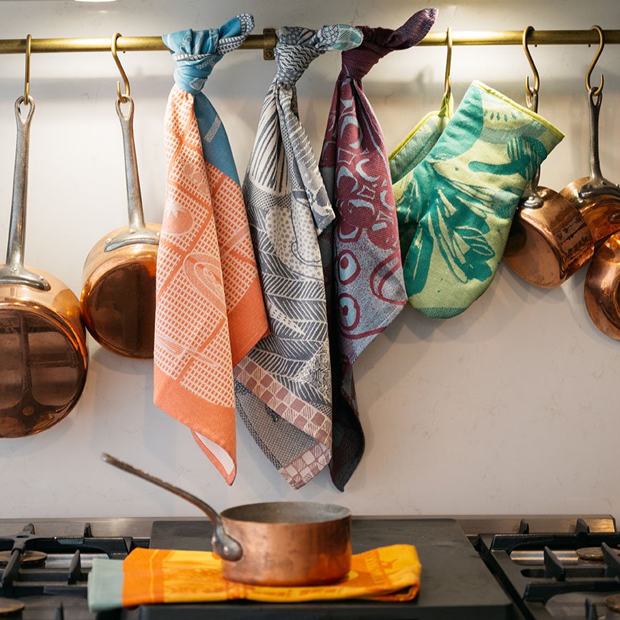 Each Moutet tea towel is designed and masterfully woven in France by skilled artisans, ensuring exceptional quality, vibrant patterns, and timeless charm for your kitchen or table. With over five generations of expertise, Moutet continues to weave tradition and creativity into every piece.