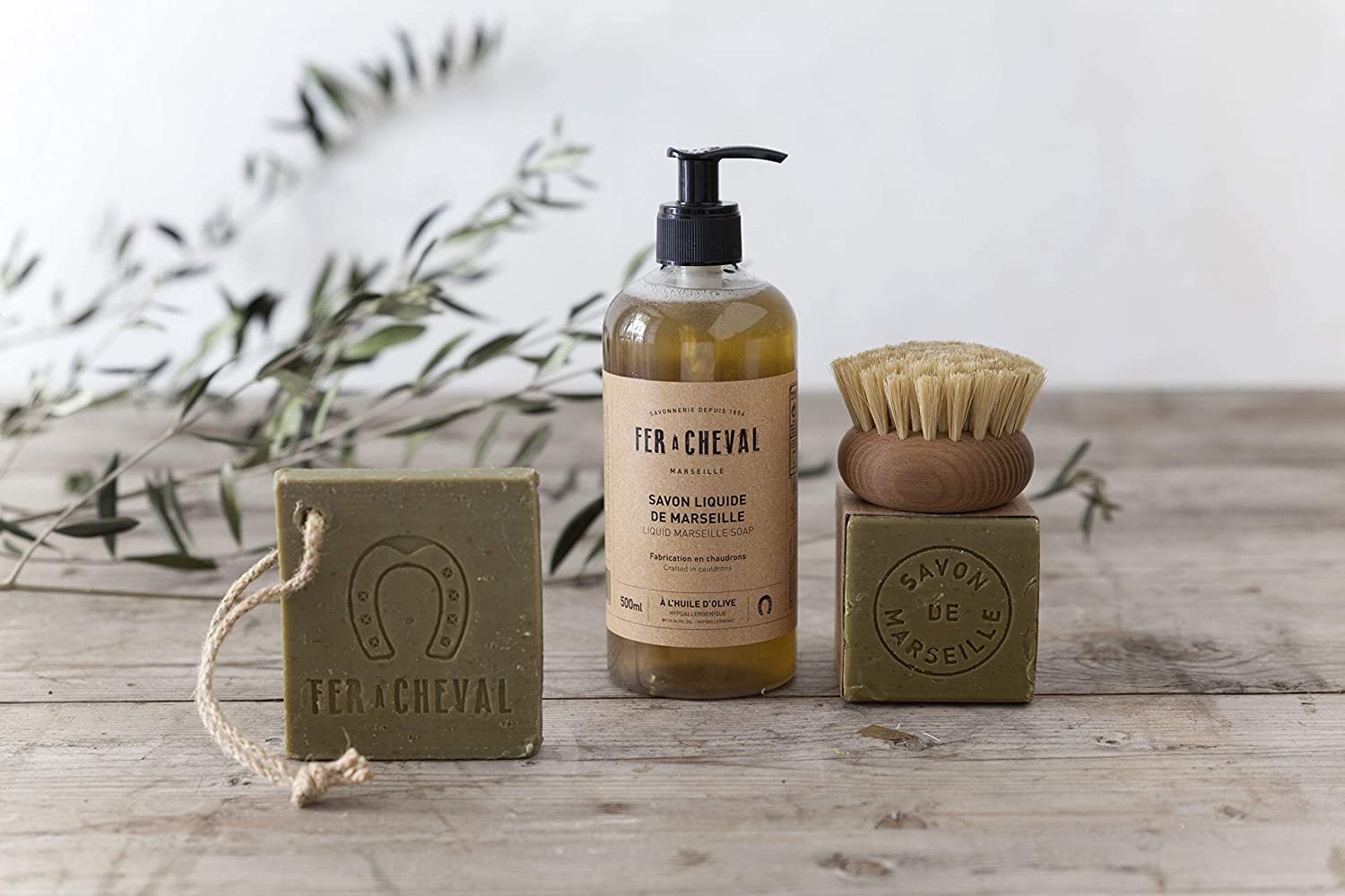 Fer A Cheval liquid Marseille soap with olive oil has been manufactured to be as close as possible to the manufacture and composition of authentic Marseille soap.