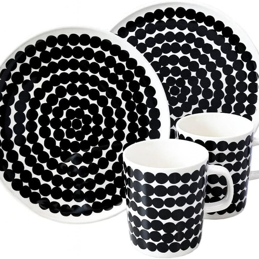 Oiva Räsymatto Breakfast Set in Black & White | 2 Mugs & 2 Plates