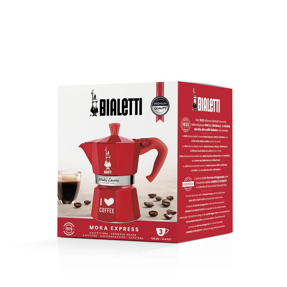 Bialetti Moka Espresso Coffee Maker Stovetop | Limited Edition: Coffee Lovers - Red
