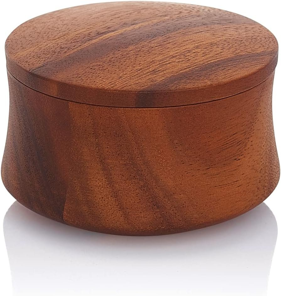 Nambe Nara Salt Cellar | Wood Salt or Spice Box with Swivel Lid