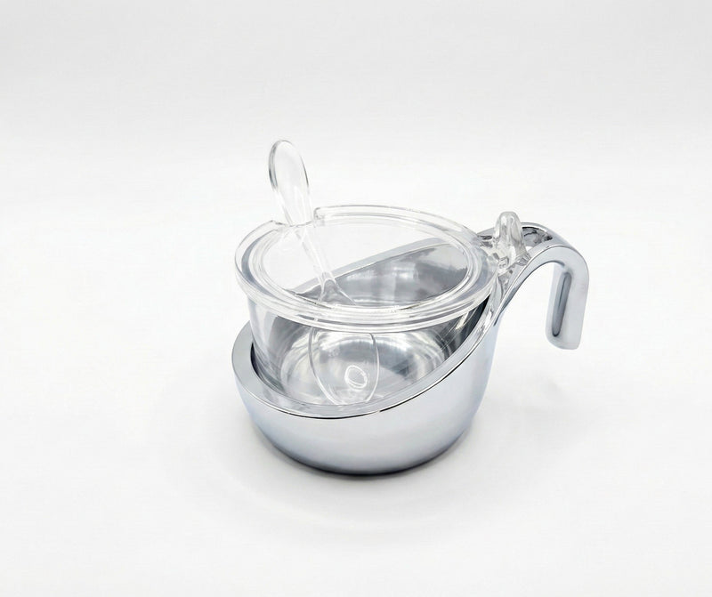 Guzzini, Two Tone Parmesan Server with Teaspoon Chrome and Glass, Everyday used for Parmesan Cheese, Preserve Jar and Sugar Bowl