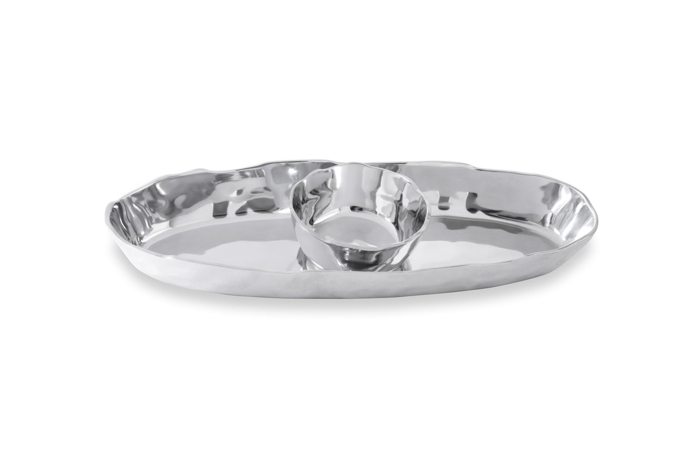 The two-piece set features a removable dip bowl nested within a deep oval tray, making it ideal for serving chips and salsa, veggies and hummus, fruit and yogurt, or crackers with your favorite spreads. A multifunctional serving piece of heirloom quality, it transitions seamlessly from casual gatherings to elegant entertaining.