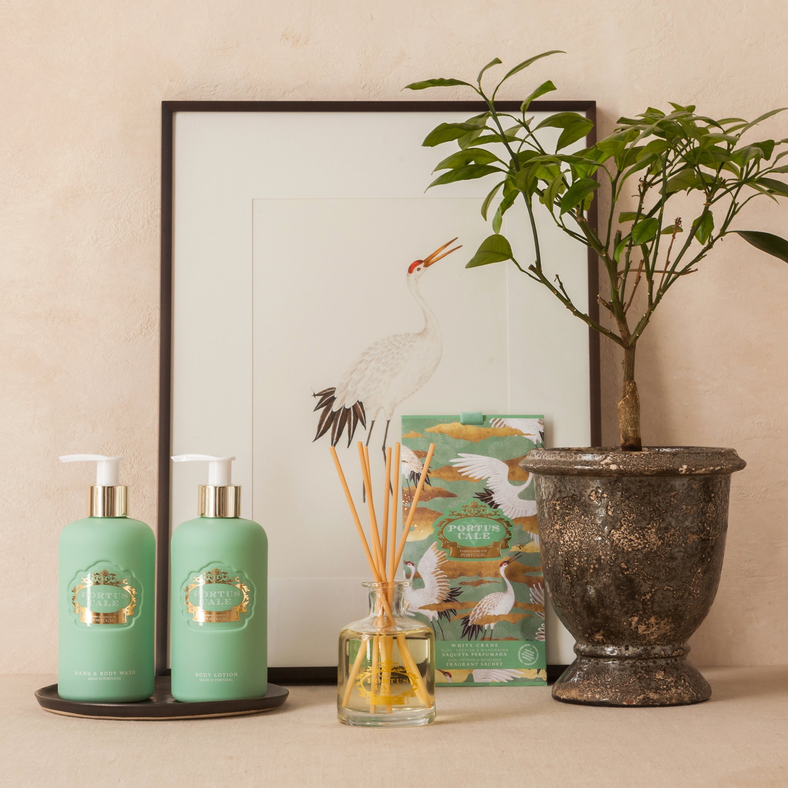 White Crane Body Lotion by Portus Cale is the relaxing finishing touch for a cared-for, fragrant skin. Endowed with a soothing citrus fragrance, a harmonious combination of the citrus charm of Yuzu with the earthy, green notes of Vetiver enhanced by the juicy charm of Mandarina, this body lotion is enriched with olive oil, jojoba oil, and cocoa & shea butters, for a complete and exquisite care.
