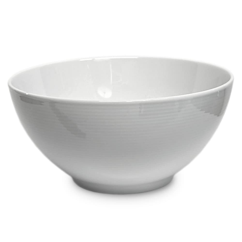 Set of 4 Cereal Bowls, Made in Germany of fine porcelain for Thomas by Rosenthal Pure white, subtly imbued with raised white lines Coordinates with other Loft pieces for a contemporary table Dishwasher- and microwave-safe