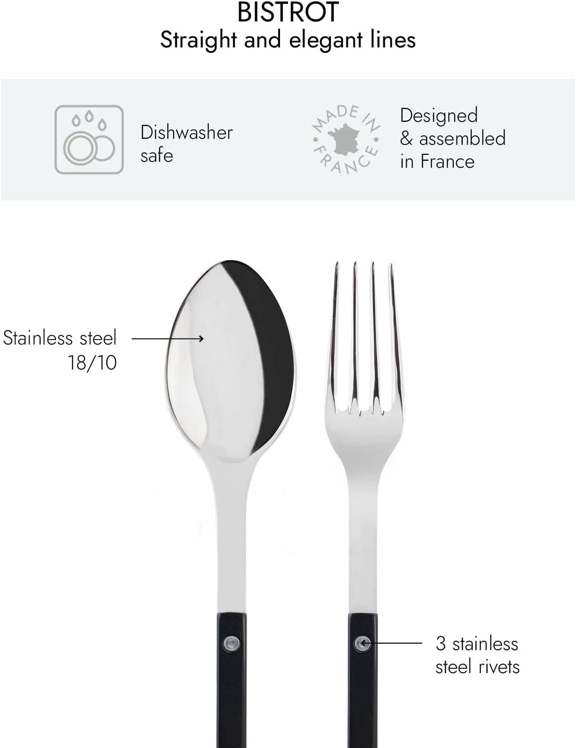 Bistrot Serving Set Large Fork & Spoon | Shiny Black