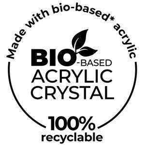 The vanity collection is made from bio-based* acrylic crystal, a modern, renewable, organic, non-fossil material obtained from vegetable waste that’s also 100% recyclable.