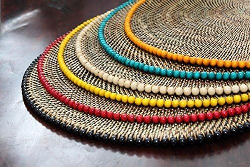 Artisan Woven Rattan Round Luxury Placemats with Natural Beads | Set of 4