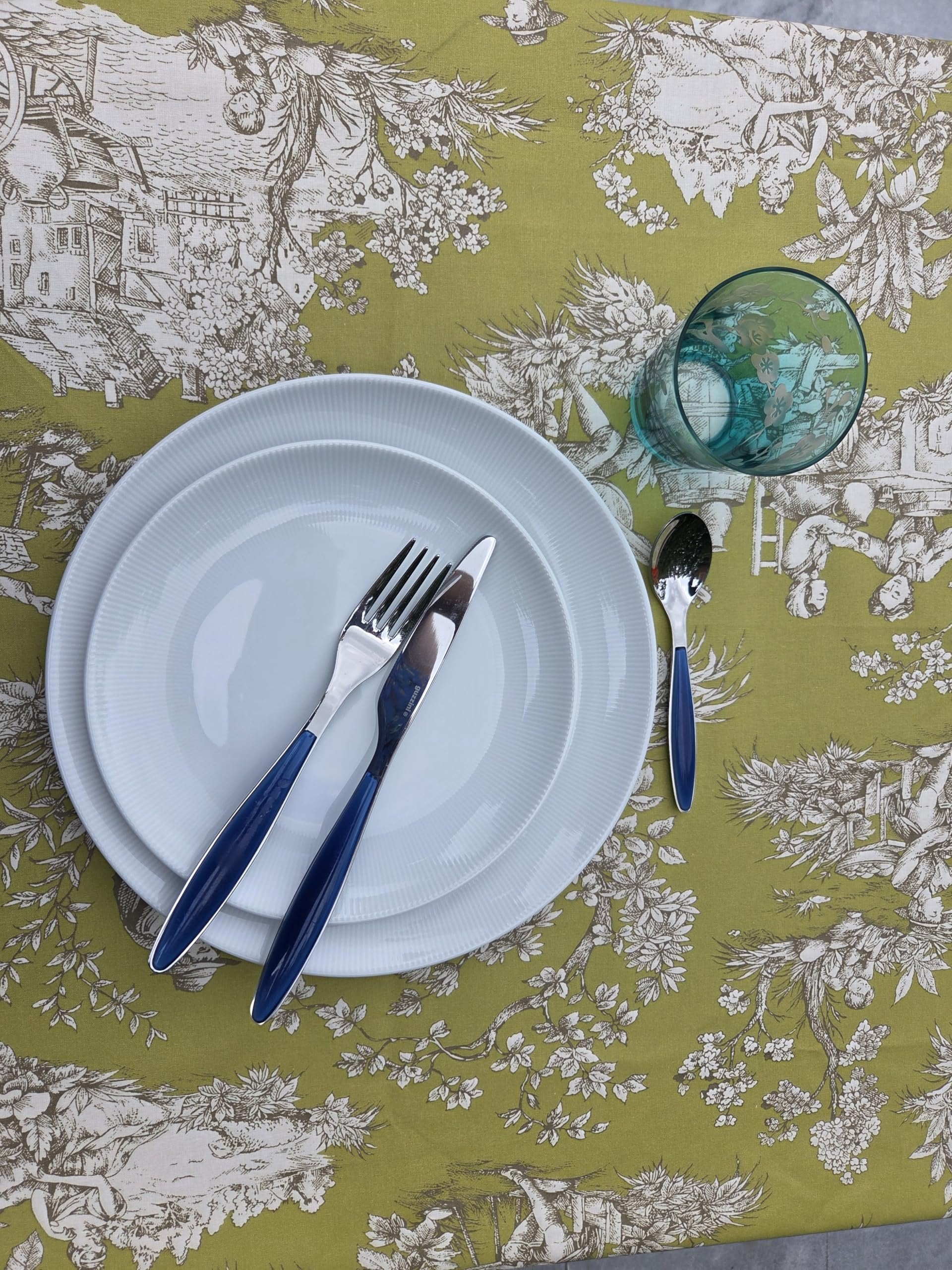 Le Cluny Monaco Blue Coated Provencal Tablecloth | Easy-Care Cotton | Multi-Size