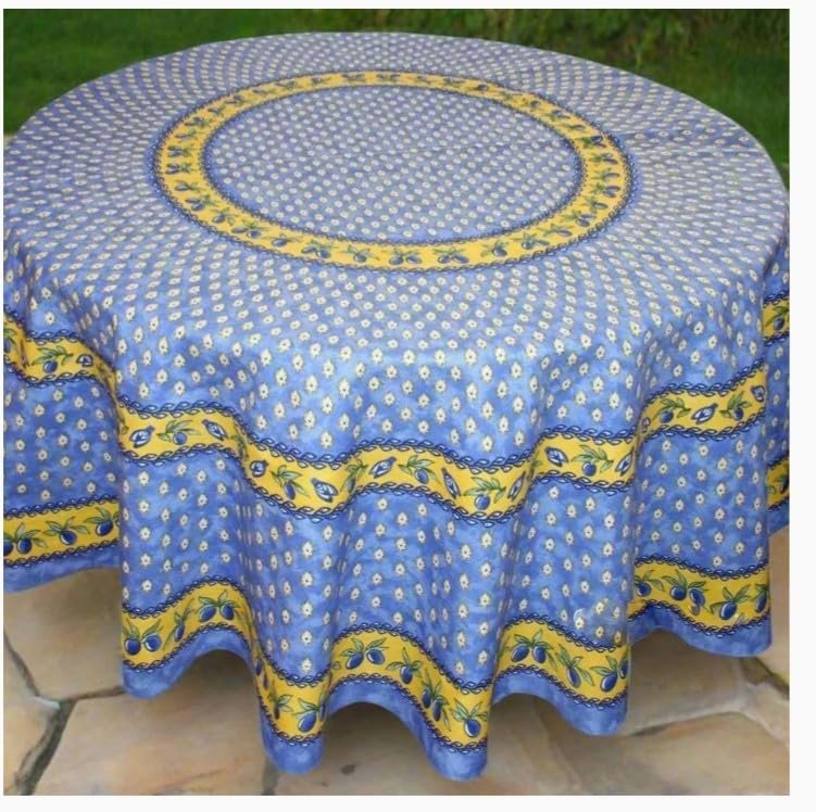 Grape Blue Provencal Tablecloth | 70" Round | Easy Care Coated Cotton