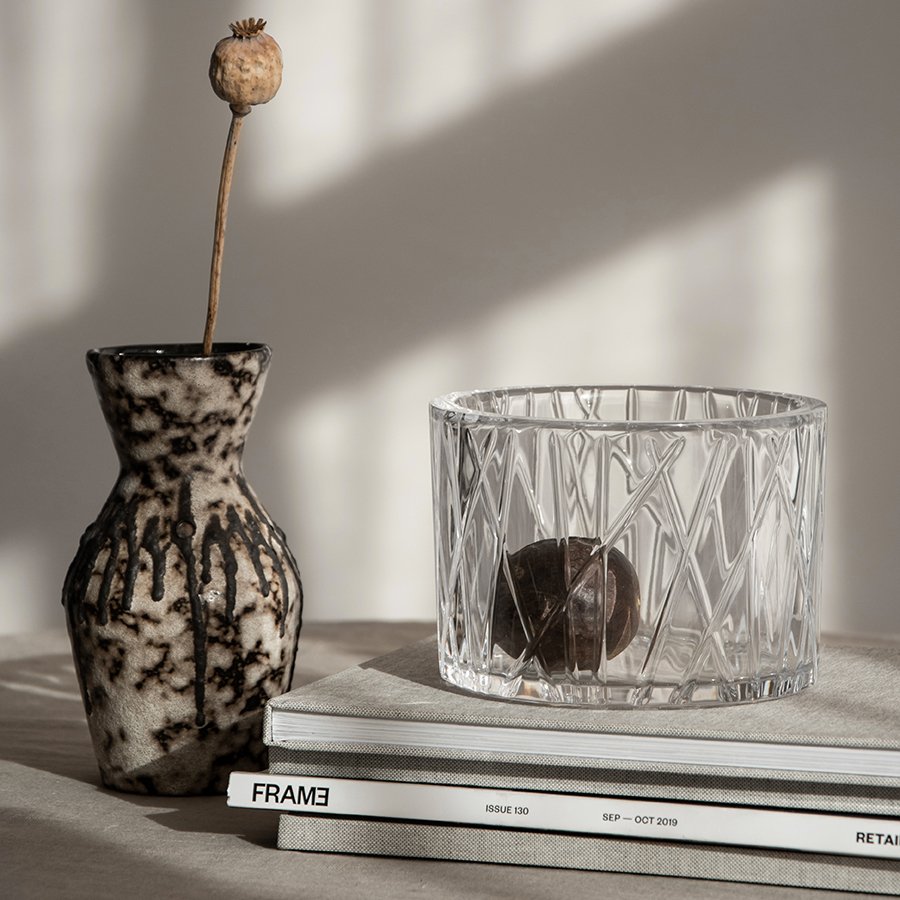 City Bowl from Orrefors has cuts that criss-cross the surface of the thick crystal, creating an asymmetric look, which contributes to the distinct identity of the collection. The bowl is both a decorative and functional object.