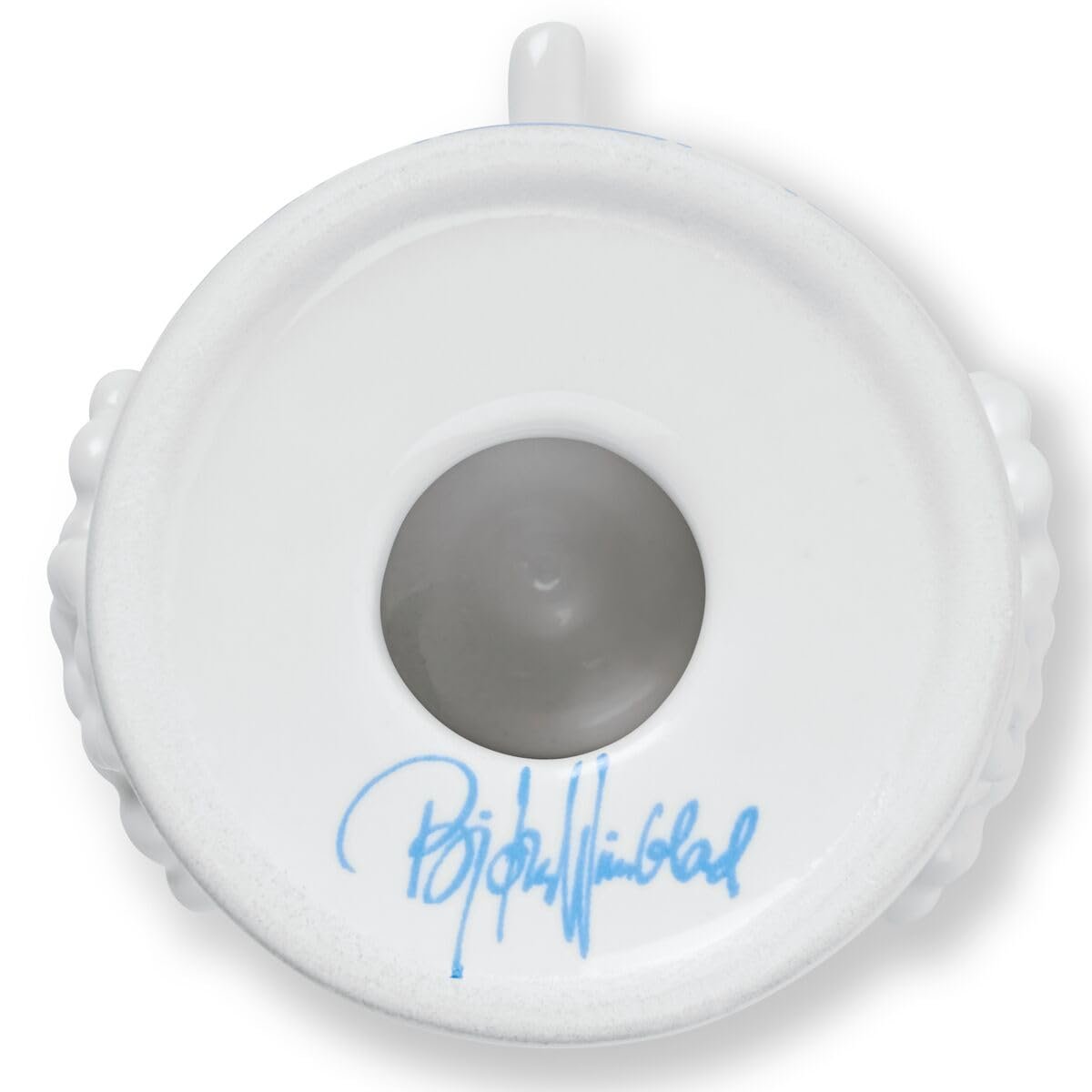 Bring playful Scandinavian artistry into your home with the Bjørn Wiinblad Eva Candle Holder in Blue. Intricately hand-painted in brilliant tones of blue and white, this charming porcelain figure showcases Wiinblad’s iconic Eva motif—complete with rosy cheeks, delicate features, and a whimsical sculptural hat that reaches toward the sky.
