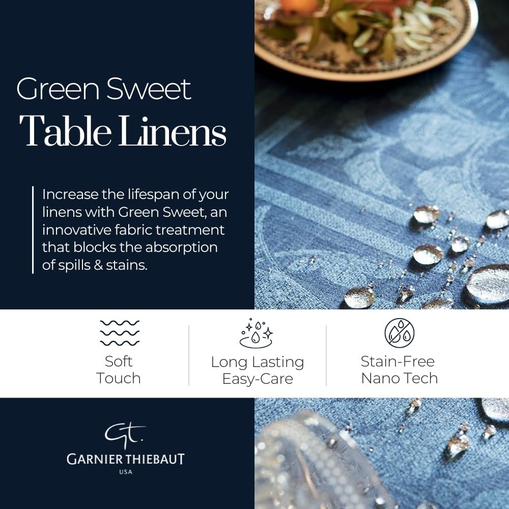 Garnier-Thiebaut 69"x69" Isabelle Amande French Jacquard Tablecloth Green Sweet Cotton69"x69" delivered size tablecloth. Wash before first use and follow care instructions on product labels.Design: Create a serene ambiance and take it slow. Set a relaxed atmosphere for your living space. Colors: Pistachio greenJacquard Damask Fabric woven in FranceGreen Sweet: 100% Extra-long staple cotton with Green Sweet stain resistant treatment for easy care. This patented eco-friendly treatment protects your linens against spill and stains, without altering the look and feel of linens. Enjoy the look and soft feel of cotton linens, without worrying about stains.Made by Garnier-Thiebaut France